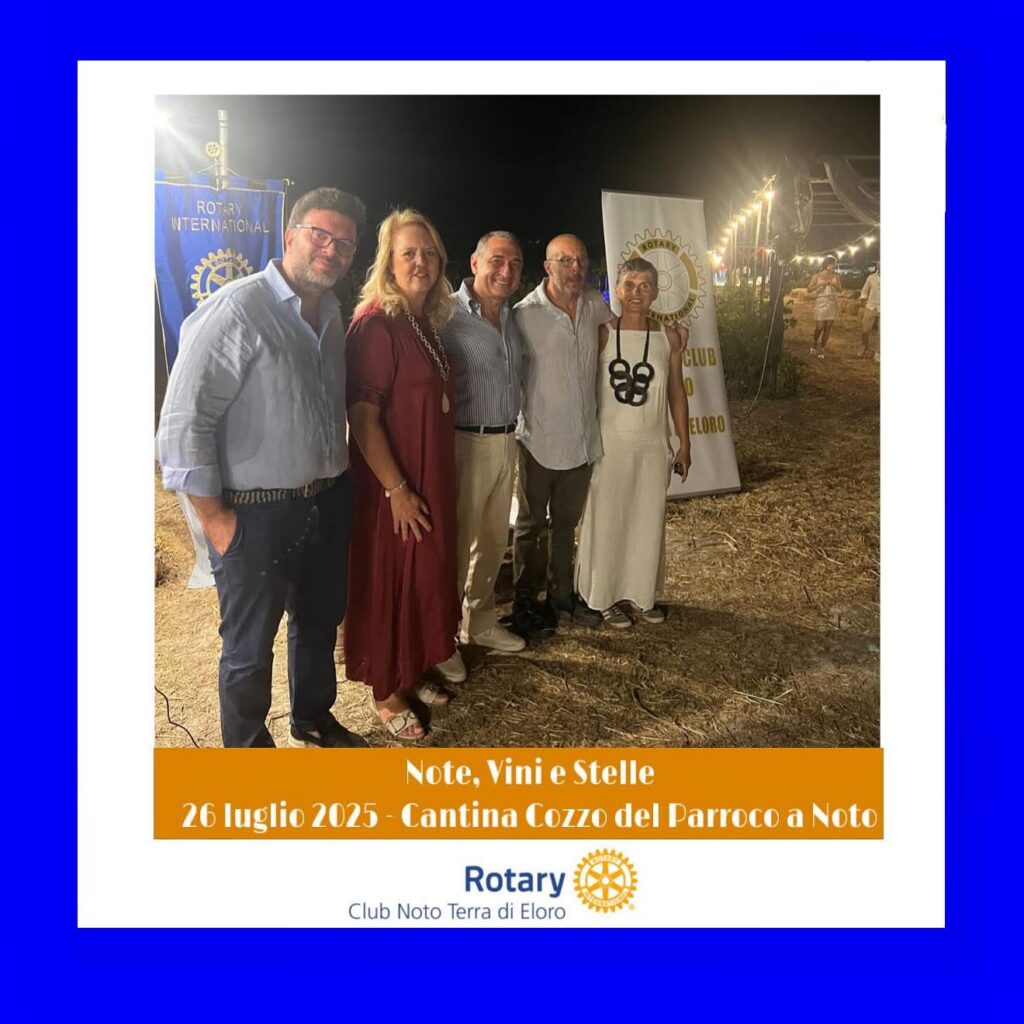 Una notte d’estate sotto le stelle di Noto ha fatto da cornice a “Note, Vino e Stelle”, l’evento organizzato dal Rotary Club Noto Terra di Eloro lo scorso 26 luglio presso la suggestiva Cantina “Cozzo del Parroco”.